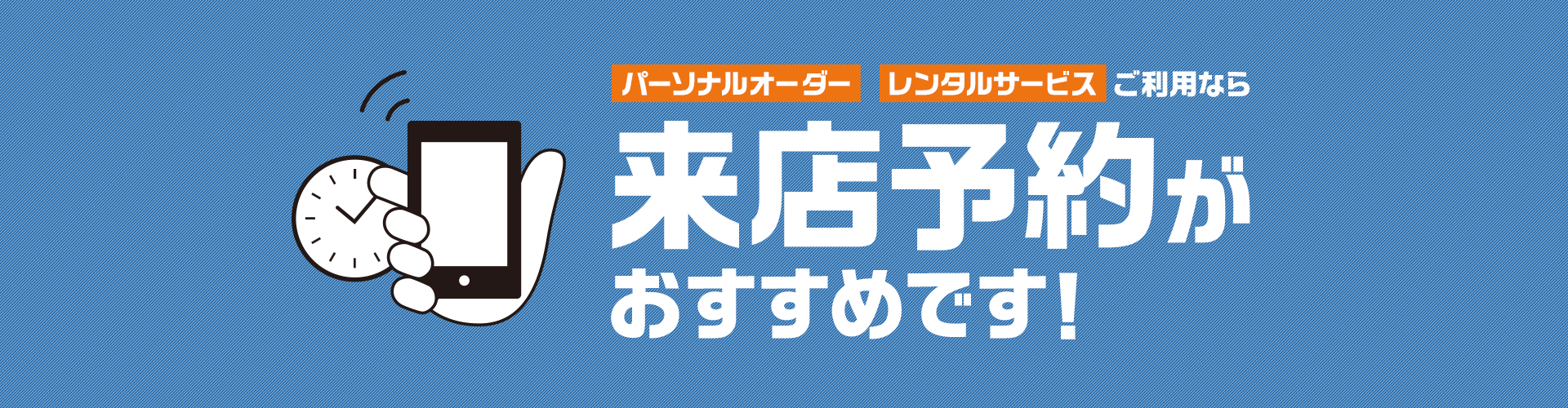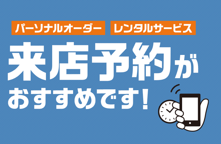 現在、来店予約サービスでは「パーソナルオーダー」と「AOKIレンタルサービス」のご相談・ご注文を承っております。