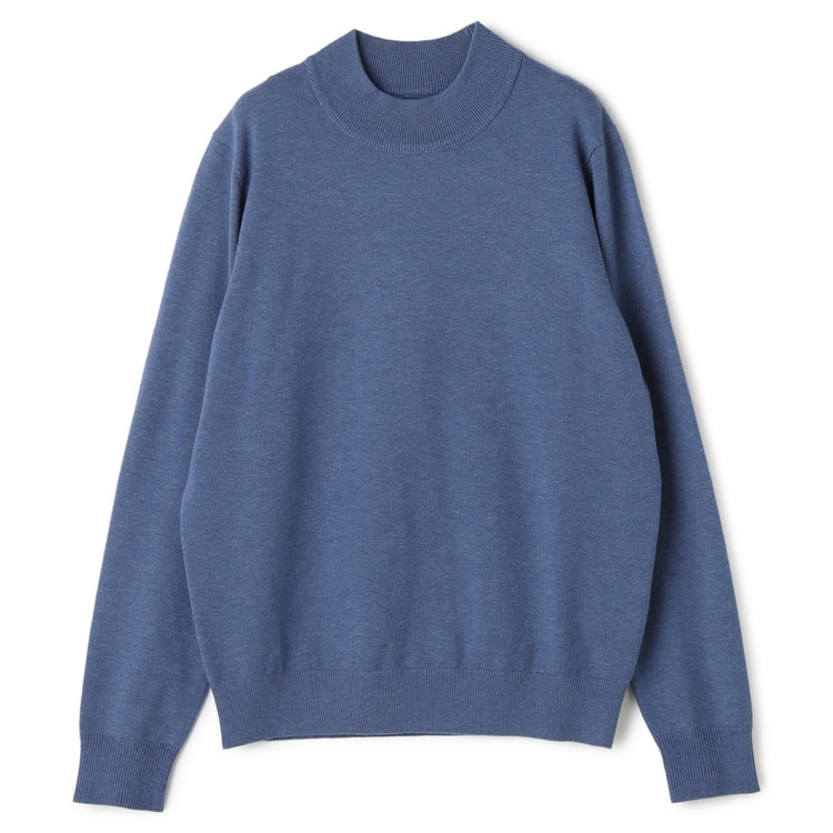 ダークトーンのコーデに、柔らかなモックネックセーターを合わせることで、硬すぎない都会的な印象を演出します。