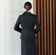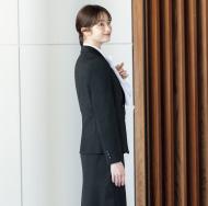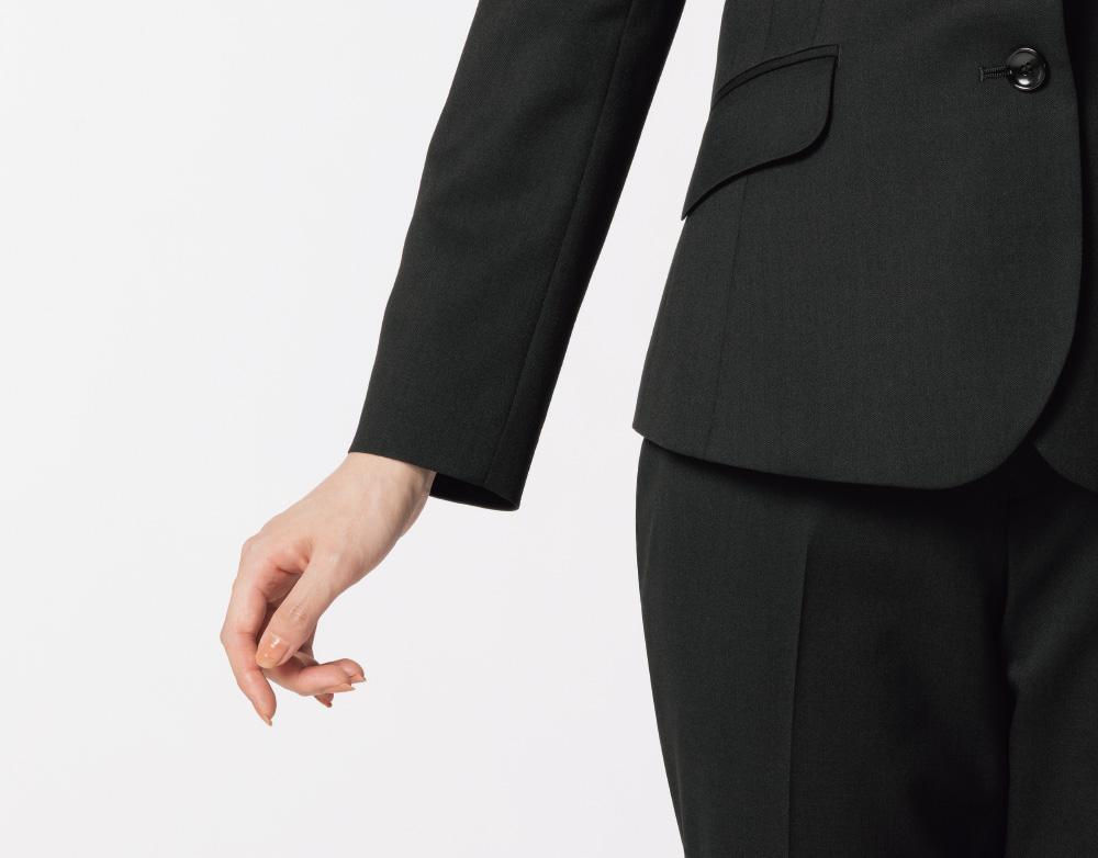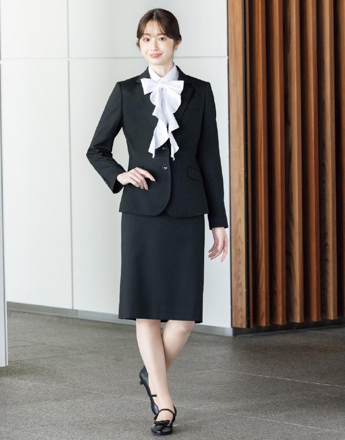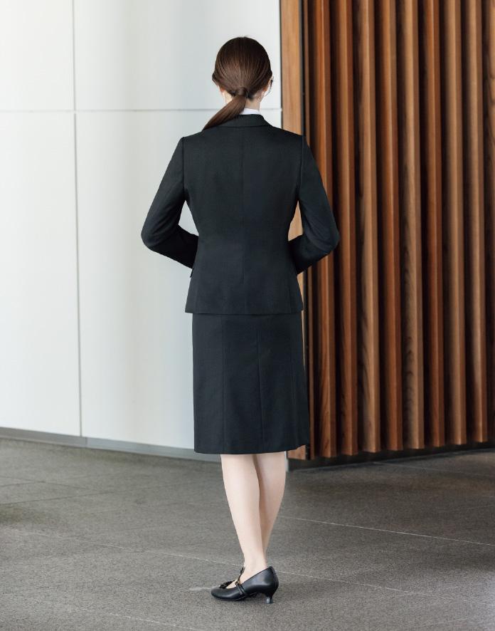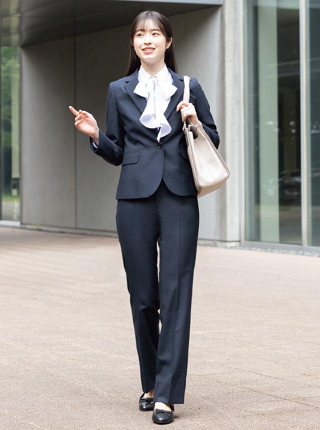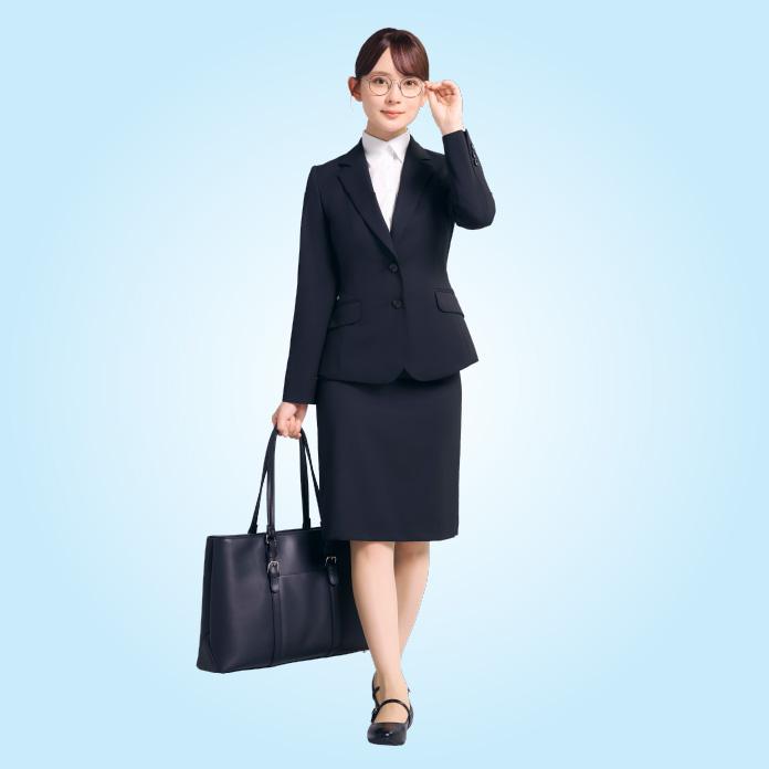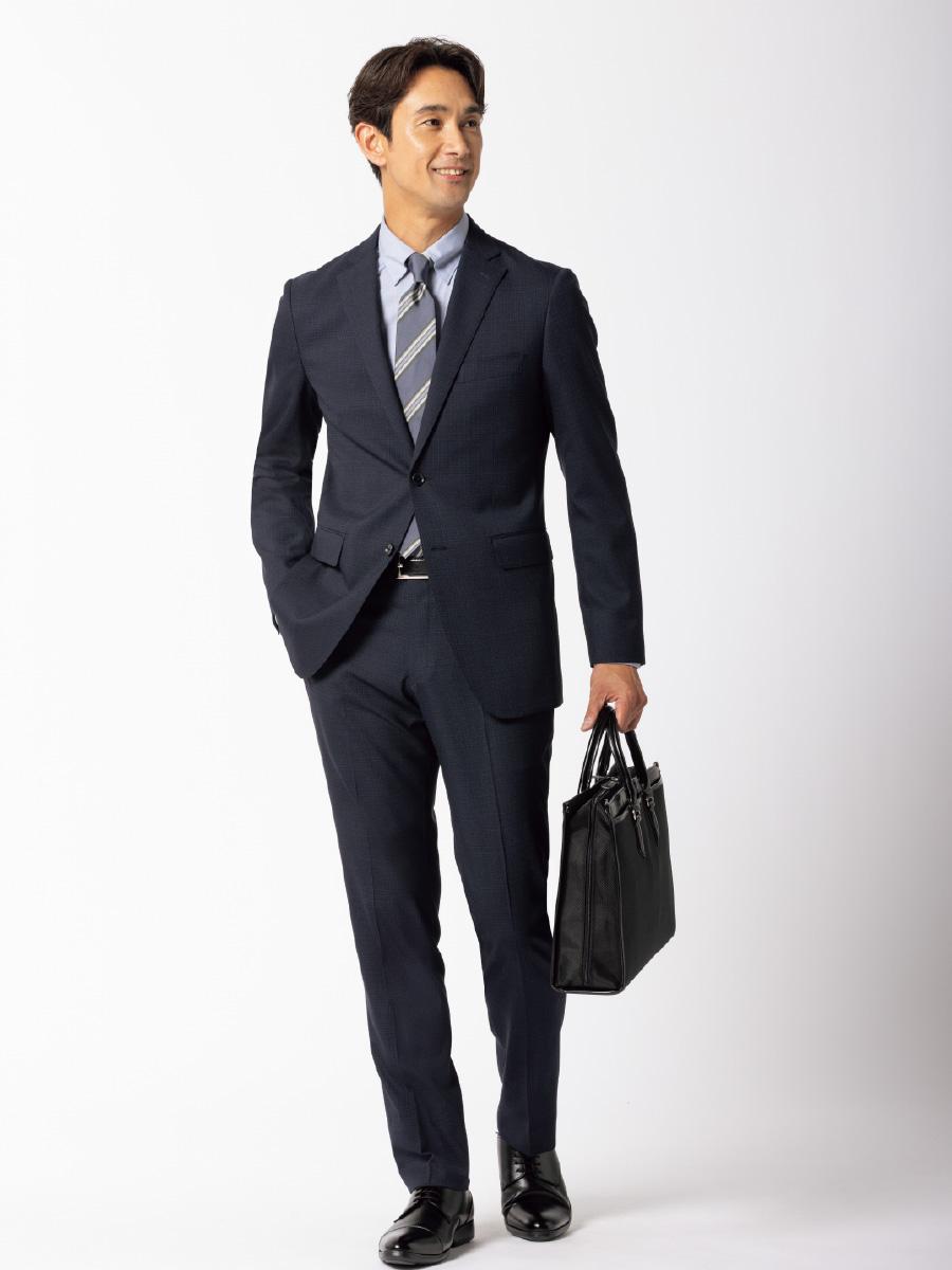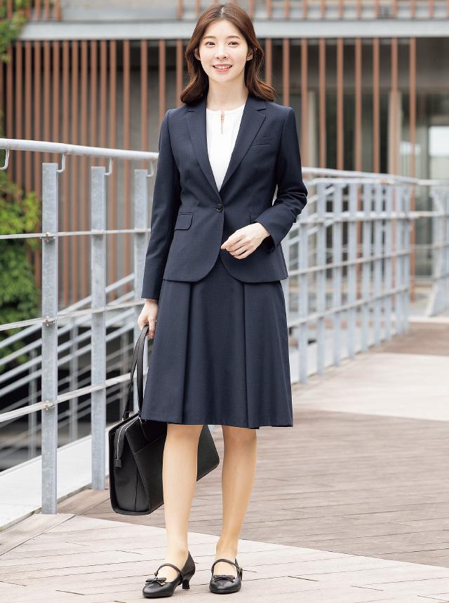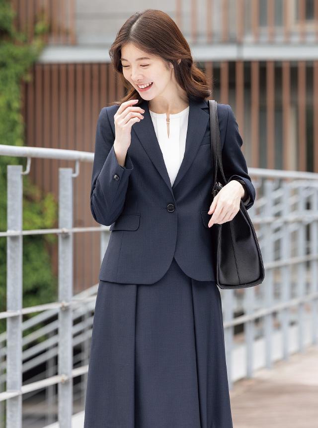 きちんと上品で、程よいおしゃれ感も漂う。大好評の紺無地調スーツ。