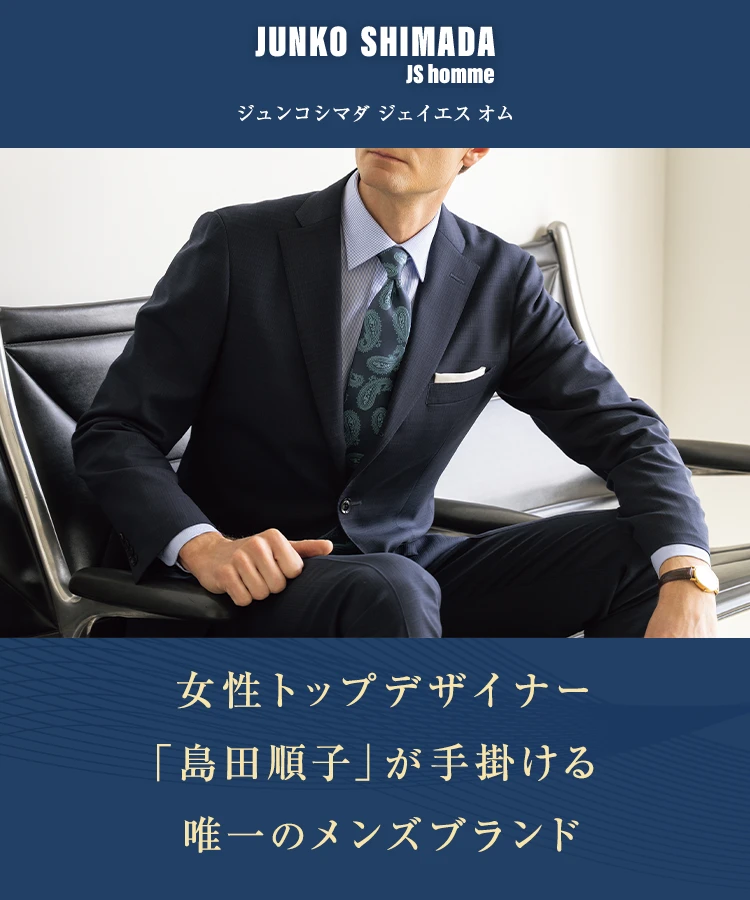パリコレクションに30年以上参加し続ける女性トップデザイナー「島田順子」が手掛ける唯一のメンズブランド「JUNKO SHIMADA JS homme」。女性の視点でとらえた男性の美しさを表現した「着て」「見て」美しいシルエットラインが特長です。