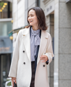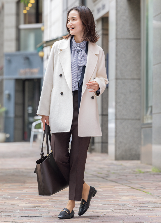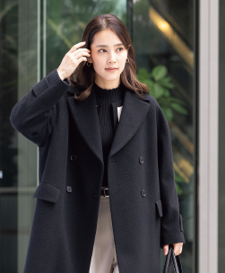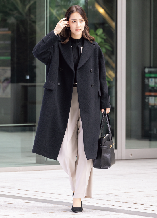 動くたびに美しさが際立つダブルチェスターコート。大人の女性の魅力を引き立て、流行に左右されずに長く着用できる1着です。