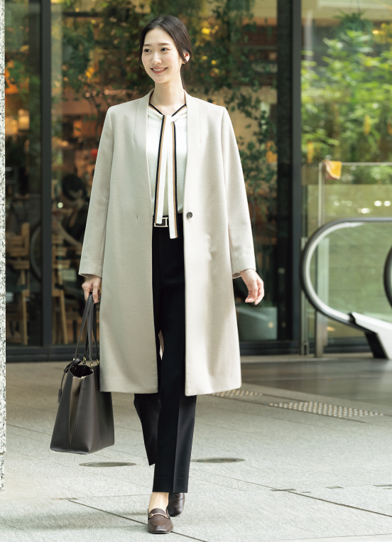 ポケット等のディテールが目立たないミニマルなデザインのノーカラーコート。AOKIならではのスーツコートとしてのこだわりがつまっており、通勤コートとして活躍すること間違いなし!