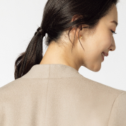 やや高めの後ろ襟仕立てで、ジャケットの上から羽織ってもジャケットの 後ろ襟が見えずスマートに着用できます。