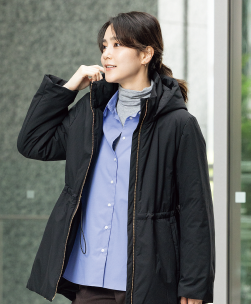 上品できれいめなデザインなのでビジネスシーンでの着用はもちろん、大人のきれいめカジュアルスタイルにもおすすめです。ミドル丈は取り外し可能はフードがついており、印象を変えられます。