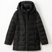 軽やかさと上品さを両立した、大人のダウンコート。着ぶくれしないすっきりとしたシルエットは、ダウンコート特有のカジュアルさを抑え、エレガントな印象を与えます。