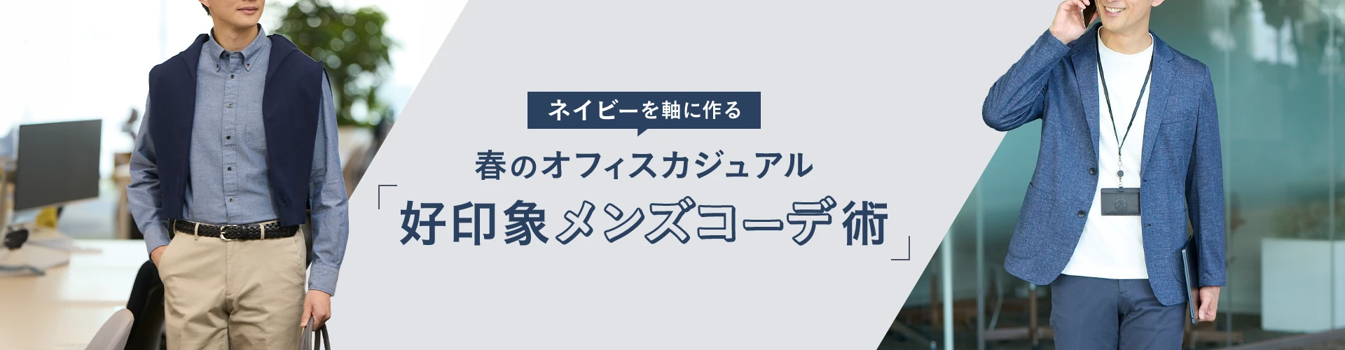 本ページでは、メンズビジネスマンに向けた、春を彩る6つのオフィスカジュアルスタイルをご紹介します。信頼を勝ち取るネイビースタイルを軸に、「インナー」と「パンツ」の最適な組み合わせをマスターして、春のビジネスシーンをスマートにアップデートしましょう。