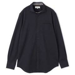 インナーに黒を合わせることで、モダンで都会的な印象を演出。ボトムスには相性の良いミディアムグレーのパンツを選び、ネイビーから黒、そしてグレーへと繋がる繊細なグラデーションを構成しました。 全体をダークトーンで固めすぎず、パンツで一段階明るさを出すことで、春らしい軽やかさと落ち着きを両立。知的でクールな印象を演出したい日に最適な組み合わせです。