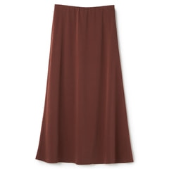 ニットの着心地のよさとジャケットのきちんと感を両立させた〝MeWORK〟のニットジャケット。ニットには、ツヤを添えるのが今季の気分。ワインカラーのサテンロングスカートで華やかに導いて。