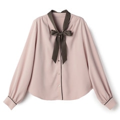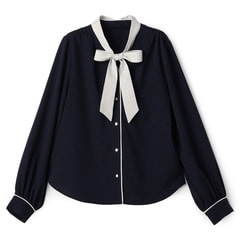 袖口やボタン周りにパイピングを施し、ふんわりした腕周りのシルエットをつくる長めのパフ袖で、ブラウス一枚でも存在感のあるデザインを実現しました。