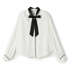 取り外しできる異素材のリボンで2Wayの着こなしが可能!