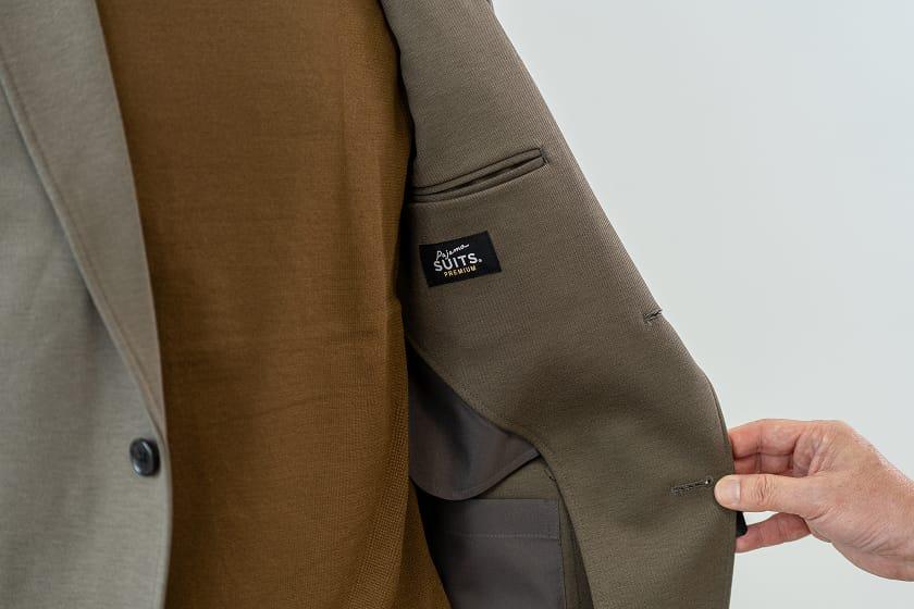 「今季のジャケットデザインは一見シンプルながら、内部には数々の工夫が隠れています。「パジャマスーツ プレミアム」に関しては、構造面をアップデート。その象徴が新たに開発した内側の腰ポケットです。やや大きめの設計で収納力を高めながら、使いやすさに配慮しました。裏地のない仕様では通常ステッチが表に響いてしまいますが、特殊な縫製技法を採用し、表面をすっきりと仕上げています」