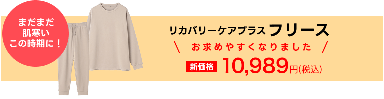 ふんわり温かなフリース素材のリカバリーケアプラス。