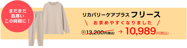 ふんわり温かなフリース素材のリカバリーケアプラス。