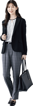 - スカートを選ぶと柔らかい印象に、パンツを選ぶとスタイリッシュな印象に。動きのあるワークの際は動きやすいパンツがおすすめです。