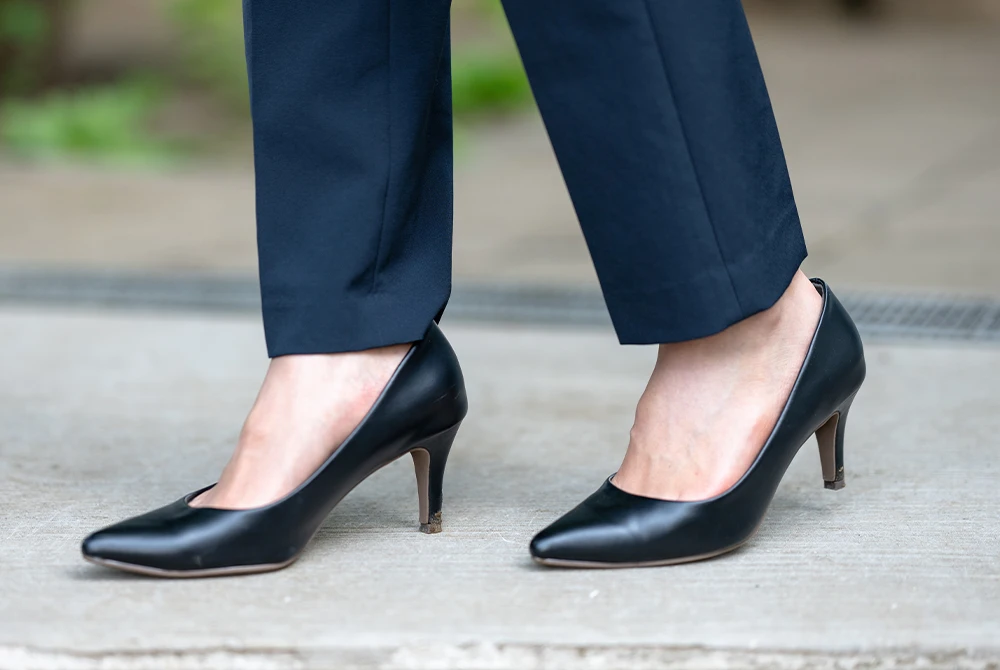 サイズが小さいと窮屈に感じやすく、大きすぎる場合は足が靴の中で動いて余計な負担がかかる可能性があります。パンプスを選ぶ際は、つま先からかかとまでの長さだけでなく、足の幅も確認しましょう。