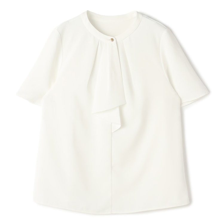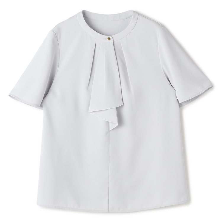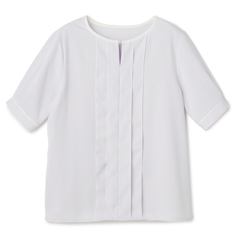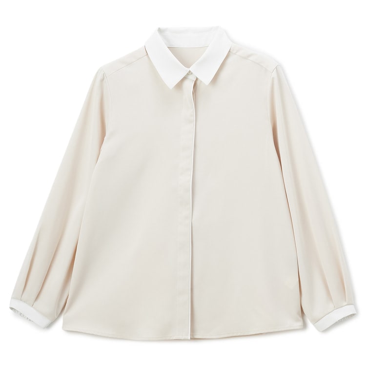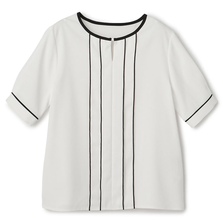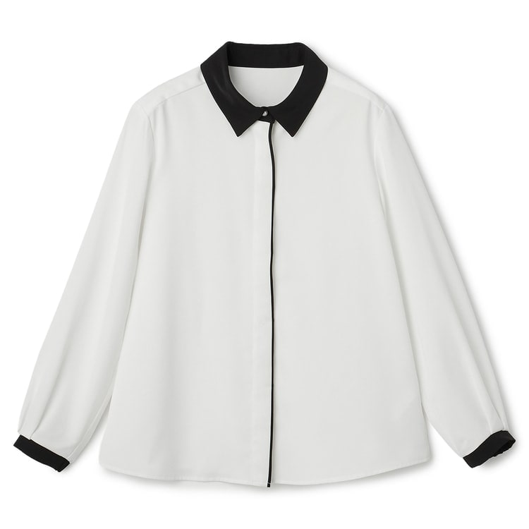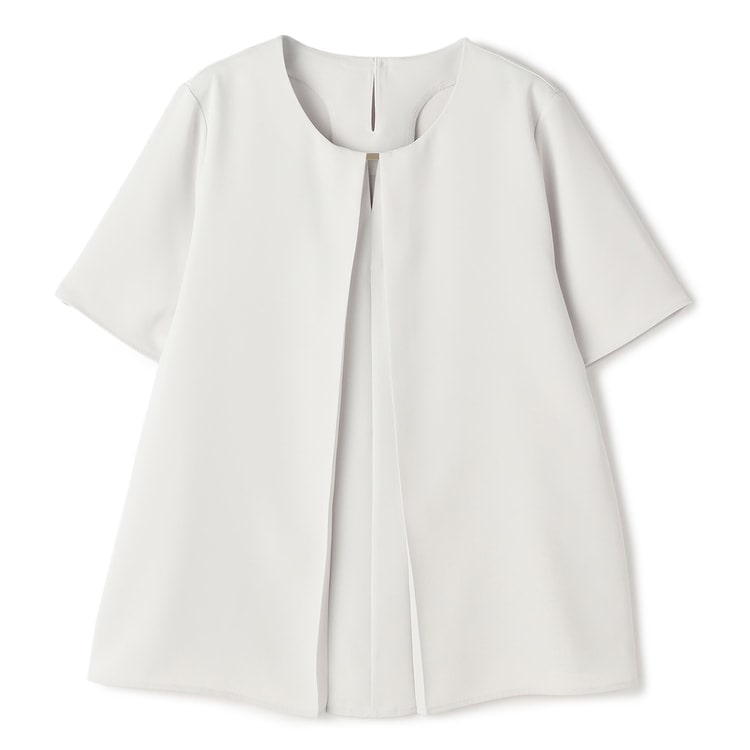 バイカラーの襟が目を引くブラウスを主役にした都会的な着こなし。透け軽減機能で一枚でも安心です。黒のワイドパンツを合わせれば、スタイルアップが叶う洗練された装いに。ブラウスとジャケットは共にUVカット付き。羽織ることで表情を明るく彩りつつ、日差しも防ぐ気品あるビジネススタイルが完成します。