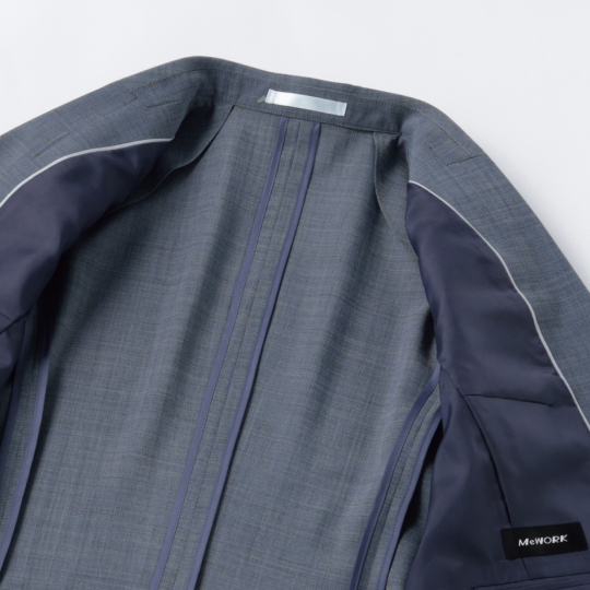 ニュアンスのあるブルーグレーは、見た目にも涼やかで洗練された印象を演出する1着。 肌馴染みの良い無地調の柄が奥行きを与え、夏のビジネススタイルを軽やかに彩ります。