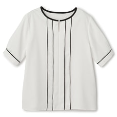 ボタンを開けても広がらず、きちんとして見えるフロントカット。