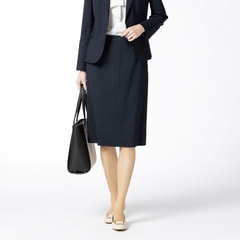洗える360°キレイスーツ タイトスカート 紺チェック セットアップ着用可