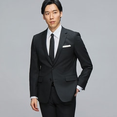 ボタン位置が高めで流行のクラシックな見た目、細身のシルエットのため、同じ細身のスリムスーツやジャケットとの相性が◎