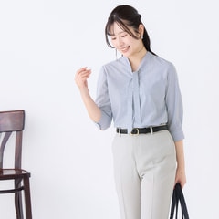 さらっとバンブー バンブーレーヨン細ボウタイシャツ 七分袖