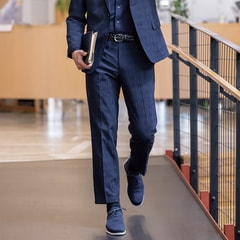 「見ためスーツ、着心地パジャマ」をコンセプトに、パジャマの快適さとスーツのフォーマルさを兼ね備えた着ていてもリラックスできるセットアップアイテム。