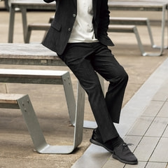 「見ためスーツ、着心地パジャマ」をコンセプトに、パジャマの快適さとスーツのフォーマルさを兼ね備えた着ていてもリラックスできるセットアップアイテム。