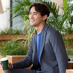 「見ためスーツ、着心地パジャマ」をコンセプトに、パジャマの快適さとスーツのフォーマルさを兼ね備えた着ていてもリラックスできるアイテム。