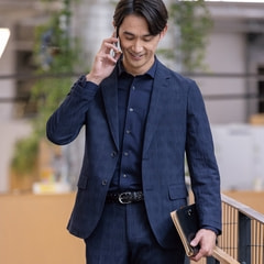 「見ためスーツ、着心地パジャマ」をコンセプトに、パジャマの快適さとスーツのフォーマルさを兼ね備えた着ていてもリラックスできるセットアップアイテム。