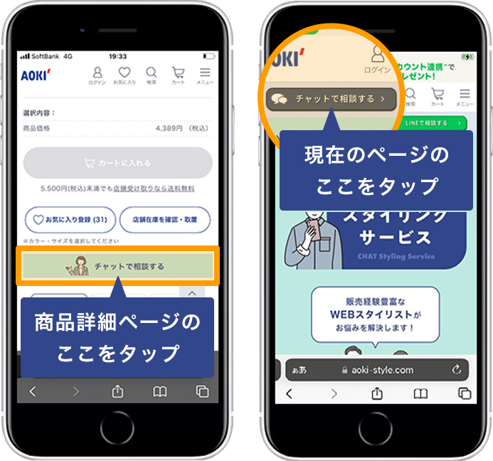 各ページの「相談する」をタップします。